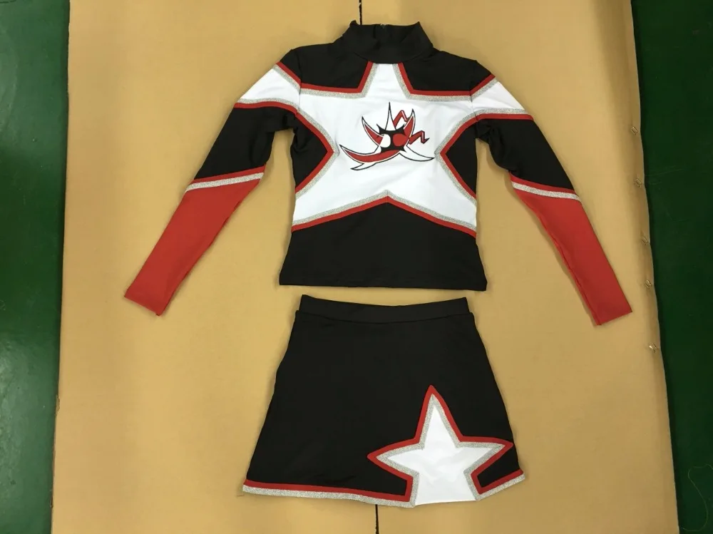 Review Competion professional Cheerleader outfit Hairbow Costume cheerleader uniform Custom made pick styl